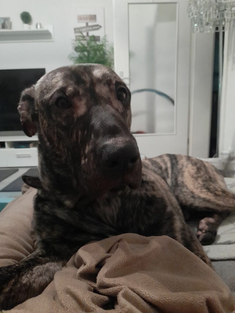 Apollo ist ein Mix aus spanischer Dogge und Malinois und wiegt aktuell 42Kg.