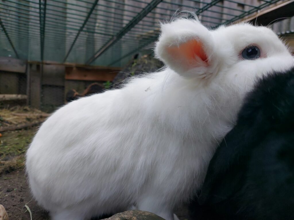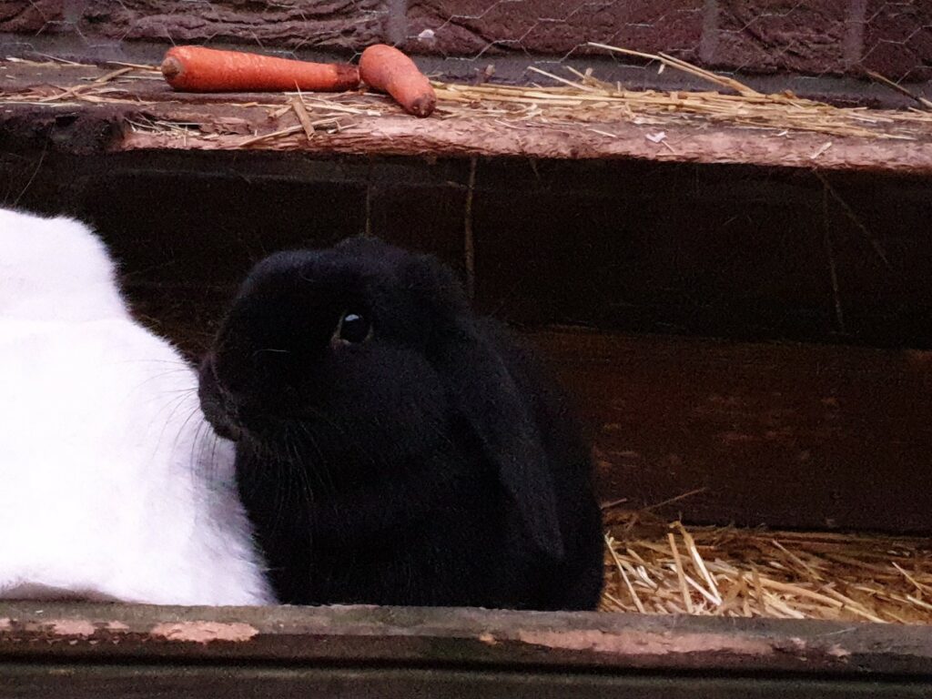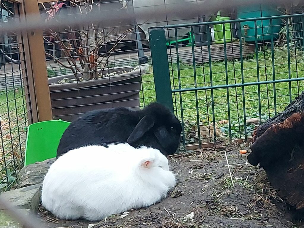 Sie sind sehr aufgeweckt und zutraulich. Sie leben in Außenhaltung mit Stall und einem großzügigen Gehege mit viel Platz zum Hoppeln und Buddeln. So soll es auch in ihrem neuen Zuhause sein. Das Gehege und der Stall sind etwas in die Jahre gekommen,  werden aber bei Bedarf gerne mit abgegeben.