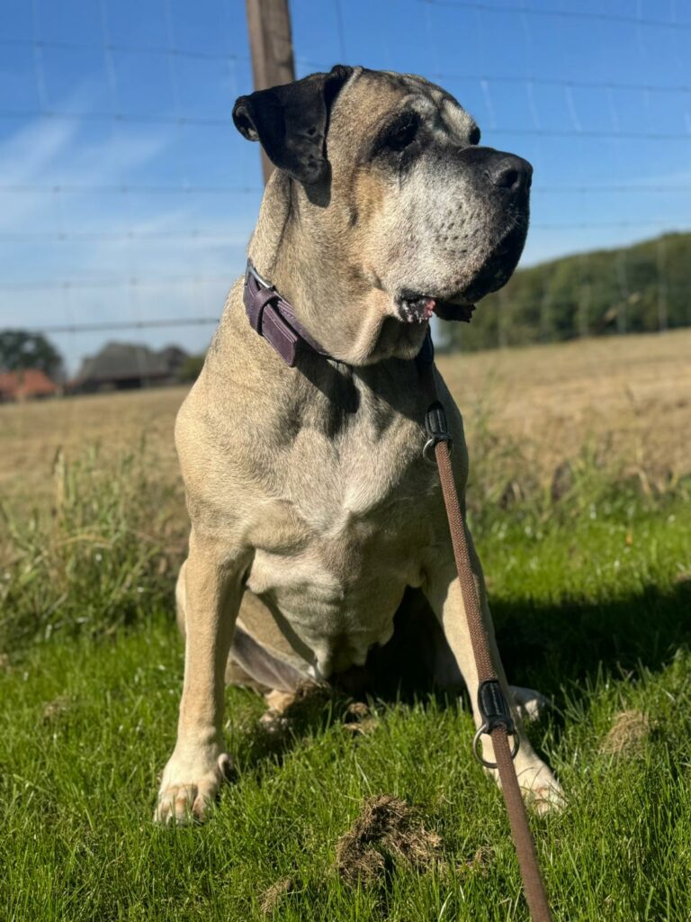 Isis ist eine 10-jährige Cane-Corso-Hündin – eine beeindruckende, kraftvolle italienische Molosserrasse, die für ihre Loyalität, Schutzbereitschaft und ihr souveränes Auftreten bekannt ist.