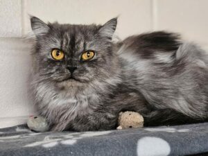 Die junge Mama ist eine sehr liebe und menschenbezogene Katze. Ihr Sohn Jannis hingegen ist noch sehr schüchtern und benötigt etwas Zeit um aufzutauen.