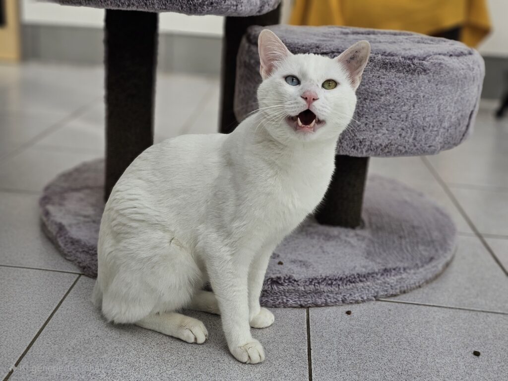 Die Quarantänezeit war etwas schwierig mit ihm, denn der junge Kater hat einen großen Freiheitsdrang und war dort sehr unglücklich und schlecht gelaunt. Er reagiert sehr eifersüchtig auf Artgenossen und möchte daher lieber ein Einzelprinz bleiben. Olaf ist ein sehr lieber und menschenbezogener Kater, spielt jedoch gerne nach seinen eigenen Regeln. Bei Bewegungsreizen kann es auch schon mal zum Angriff kommen.