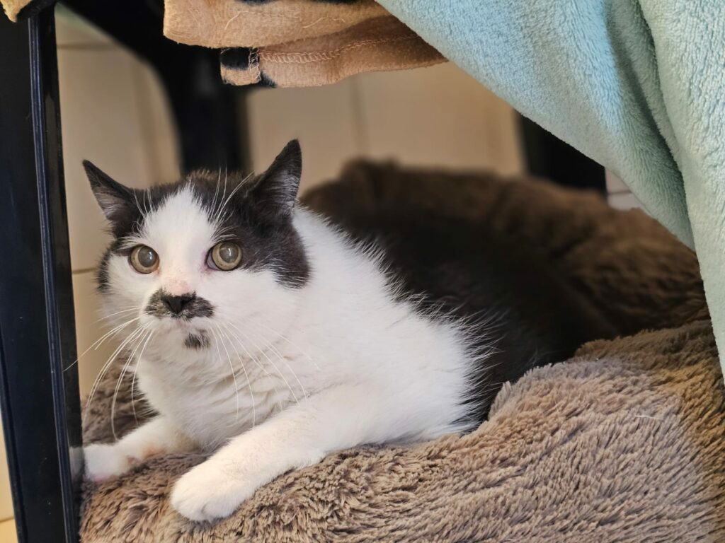 Die Seniorin ist anfangs etwas schüchtern aber im Grunde eine sehr liebe und verschmuste Katze. Tommy ist altersentsprechend sehr ruhig, schläft viel und hat bereits ein paar Wehwehchen wogegen Sie täglich Schmerzmedikamente bekommt.